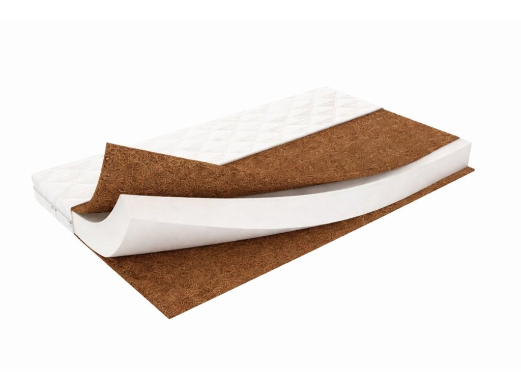 Vrchní i spodní vrstvu tvoří přírodní kokosová deska, která zajišťuje vyšší tuhost matrace, stabilitu a výbornou cirkulaci vzduchu. Kokos je přirozeně antibakteriální, antialergenní a prodyšný, čímž pomáhá udržovat suché a hygienické prostředí v postýlce. Střed matrace je vyroben z kvalitní PUR pěny, která tlumí tlak, zvyšuje komfort ležení a zároveň prodlužuje životnost matrace.